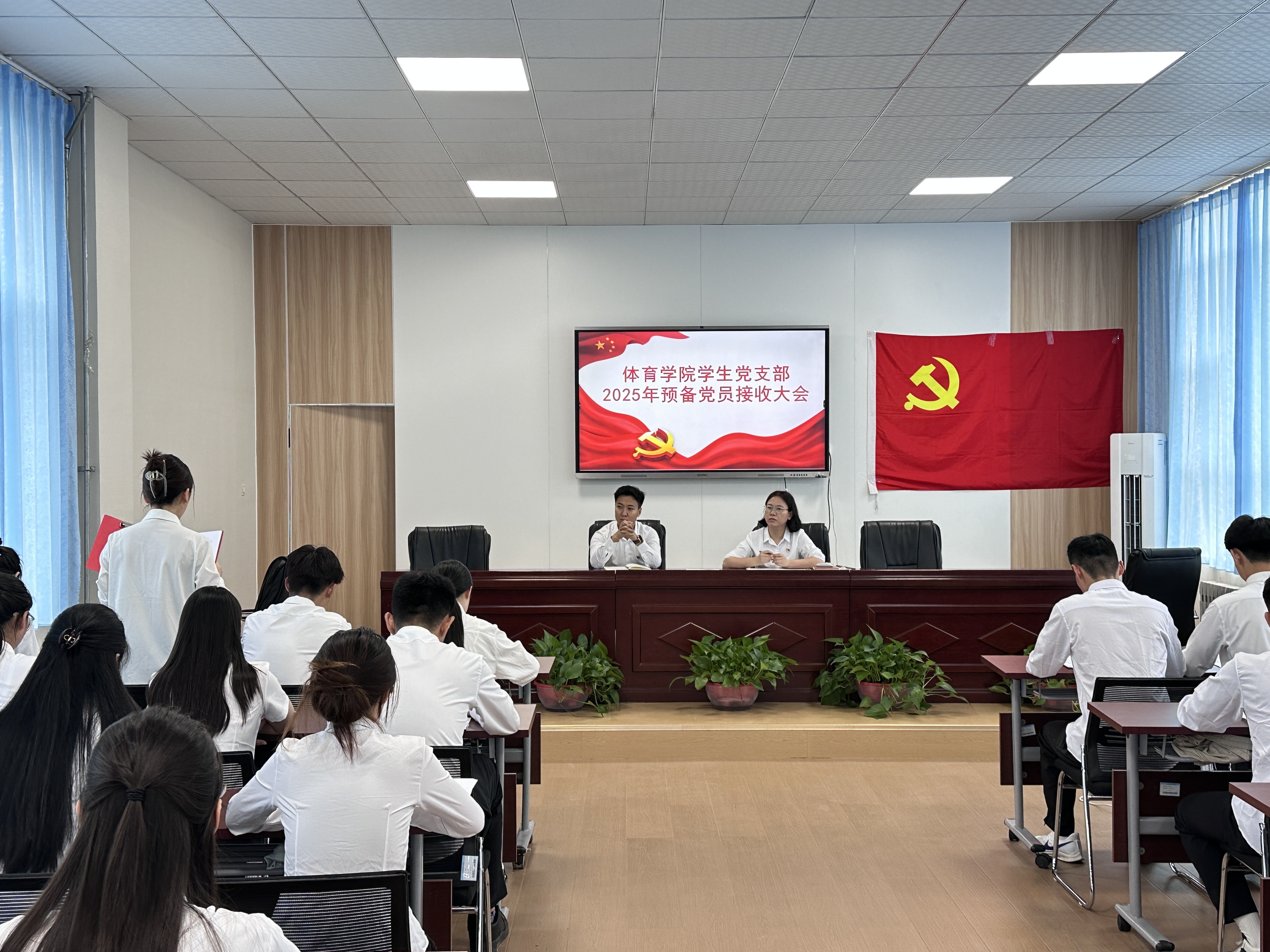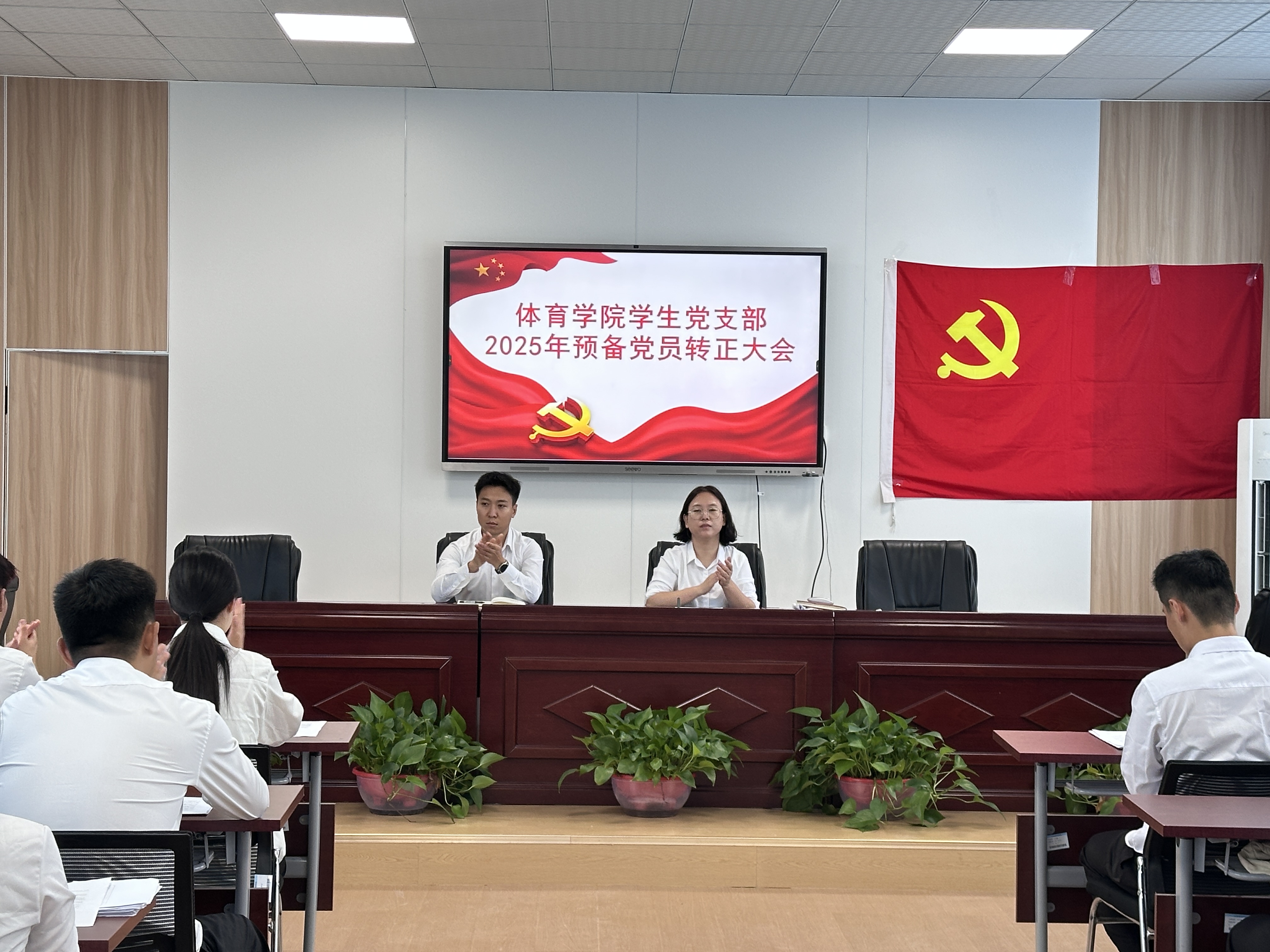 2025年6月19日,英国365集团学生党总支部于学院第一会议室召开预备党员接收大会和预备党员转正大会。