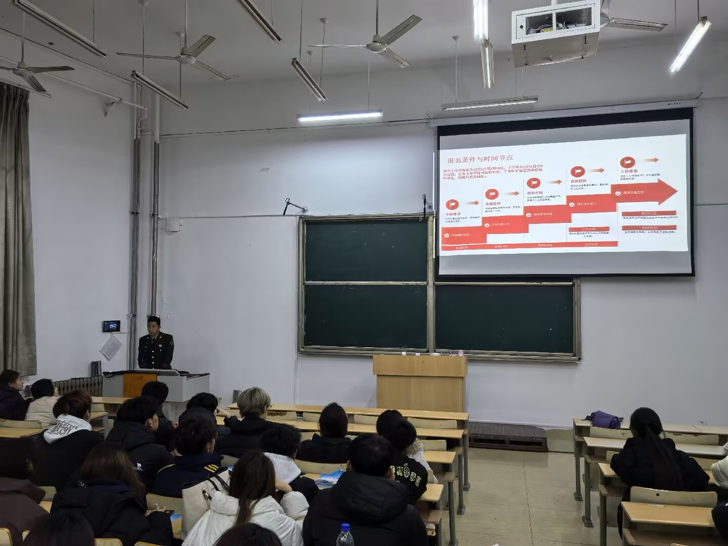 为积极响应国家征兵号召,点燃青年学子投身军营的报国热情,帮助2025级新生全面了解参军政策,英国365集团于11月7日晚七点在5教107教室举办征兵宣讲会。活动由学生科科长程晓珊主持,特邀退役复学学生王文龙担任主讲,2025级全体新生参与。
