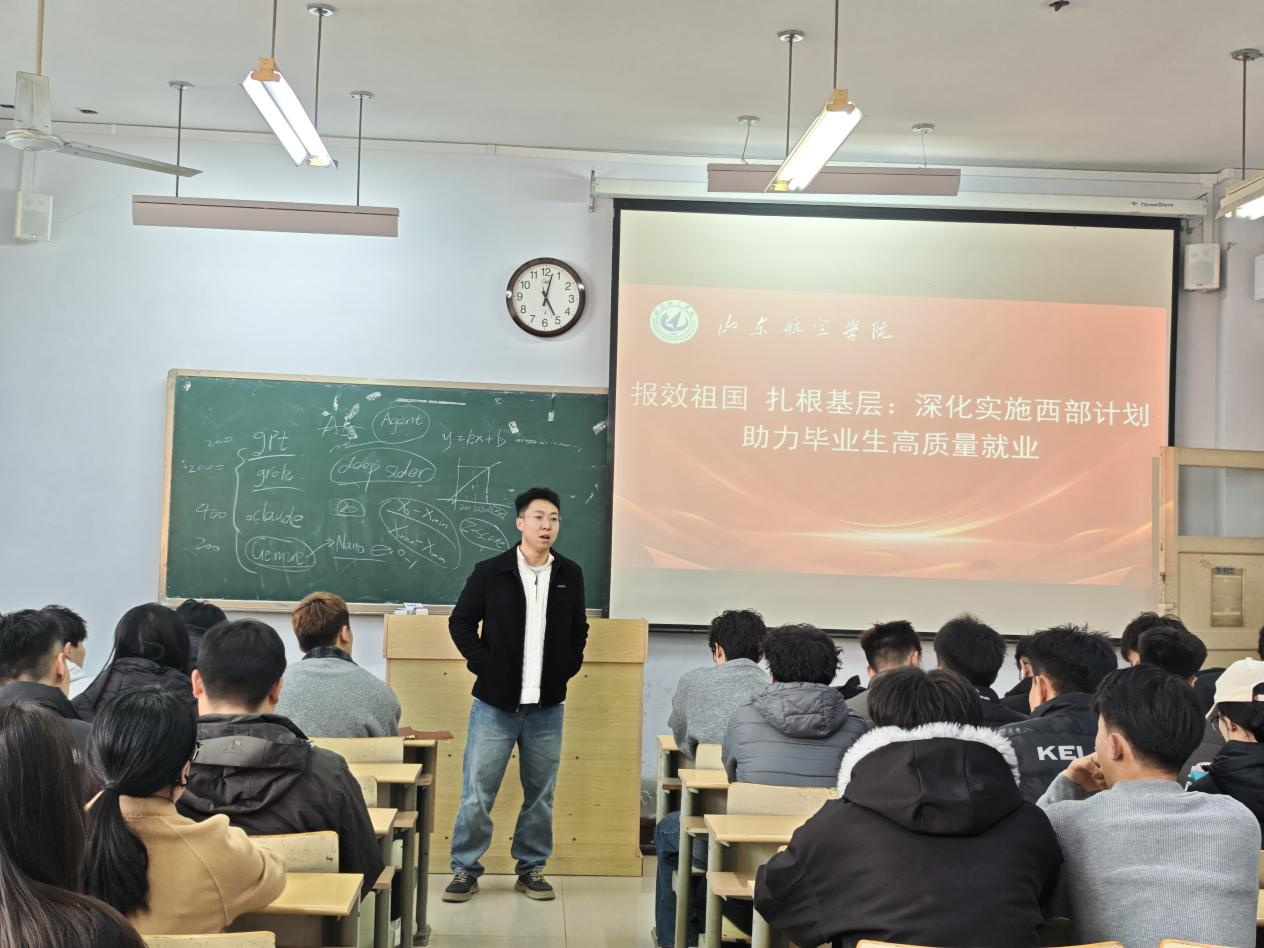 宣讲会上,李振老师围绕西部计划的招募对象、服务岗位、政策保障等方面进行了系统讲解,重点解读了生活补贴、社保缴纳、就业扶持等利好政策,帮助同学们全面了解项目的制度安排和发展前景。同时,他结合往届毕业生扎根西部基层、投身教育和乡村振兴一线的真实案例,生动阐释了基层工作的价值与意义,勉励大家将个人理想融入国家发展大局,在西部广袤的土地上锤炼本领、实现成长。在随后的互动环节中,李振就服务期限、生活保障等问题与同学们深入交流,耐心解答疑问,进一步打消了大家的后顾之忧。